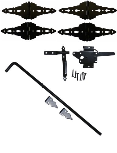 木製フェンスハードウェア – ダブルゲートキット(木製ゲートヒンジ、ラッチとドロップロッド)