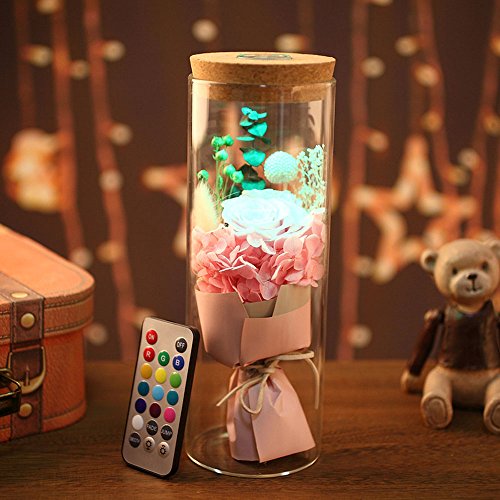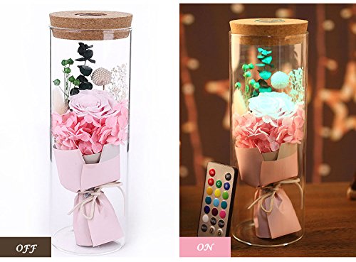 DABURYU プリザーブドフラワー ハーバリウム 花 LEDライト付き バレンタインデー プレゼン ギフト お礼 結婚祝い 誕生日 (高貴ピンク)