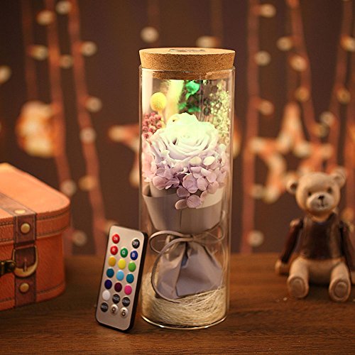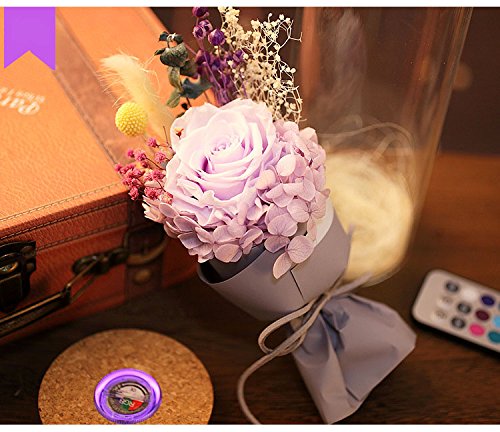 DABURYU プリザーブドフラワー ハーバリウム 花 LEDライト付き バレンタインデー プレゼン ギフト お礼 結婚祝い 誕生日 (高貴紫)