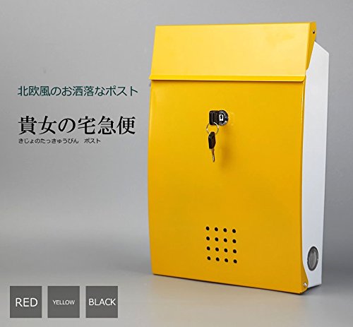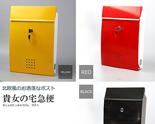 北欧風 ポスト 貴女の宅急便 大容量 赤い 黄色 黒 投函物 玄関 ガーデニング 家具 インテリア TEC-POST1078D (イエロー)