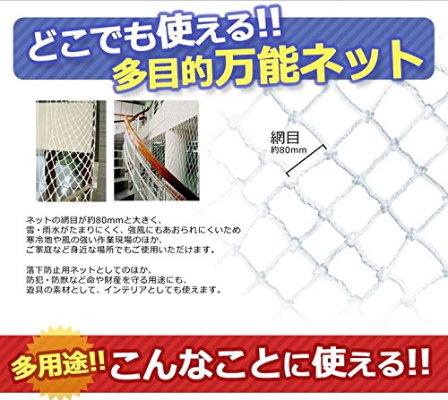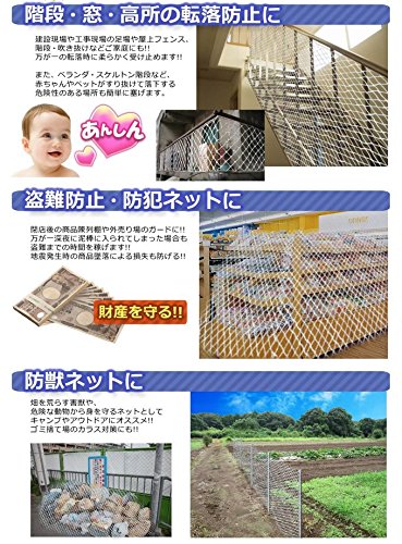 - ★ こんなことに使える!! ■階段・窓・高所の転落防止に 建設現場や工事現場の足場・階段・吹き抜けのほか、 マンションのベランダなどでも使える!! ■防犯ネットに 閉店後の商品陳列棚や外売り場のガードに ■防獣ネットに 畑を荒らす害獣や、危険な動物から身を守るネットとして キャンプやアウトドア時、ゴミ捨て場などにもオススメ!!