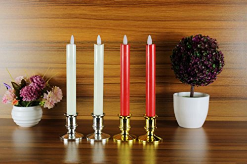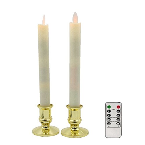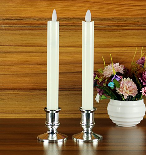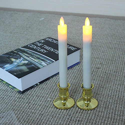 LEDキャンドル ライト 燭台付 2本组 タイマー機能 明るさ調整 照明モード付 (ホワイト)