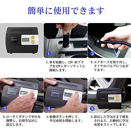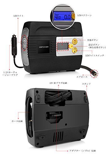 - 【多車種対応・2年保証】付属ノズルで、ホール・浮き輪・自転車・オートバイク・自動車・RV、SUV、 ATVなどものにご使用いただけ、用途によって使い分けることができます。また、ご購入時から2年保証あり、DBPOWERは万全のアフタサービスを提供しておりますので、ご注文をお待ちしております。