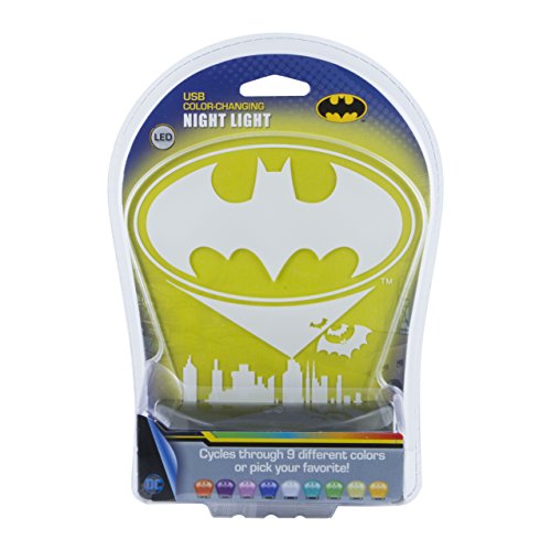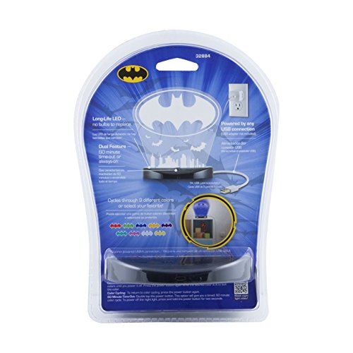 DCコミックのバットマン変光常夜灯、USB電源、9異なるカラーオプション、常にon / 60分タイムアウト、32884