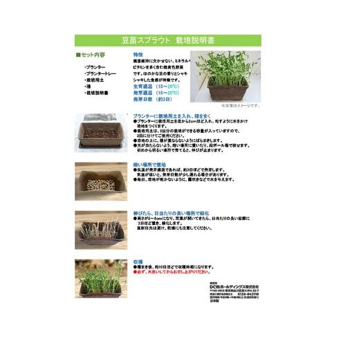 ●DCMカーマ、DCMダイキ、DCMホーマック、DCMサンワ、DCMくろがねや全国展開ホームセンターDCMグループのオリジナル商品です!●家庭で手軽に楽しめる野菜の栽培セット。●栄養価の高さと数回収穫できる面白さが話題の「スプラウト豆苗」が家庭で手軽に楽しめます。【注意事項】●栽培の際は、添付の説明書をご覧ください。