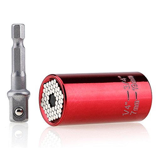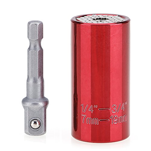 2PCS/セット 万能ソケット ユニバーサル ソケットレンチ( 7〜19mm)グリッパー & ドリルアダプター レッド