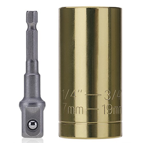 2PCS/セット 万能ソケット ユニバーサル ソケットレンチ( 7~19mm)グリッパー & ドリルアダプター ゴールド