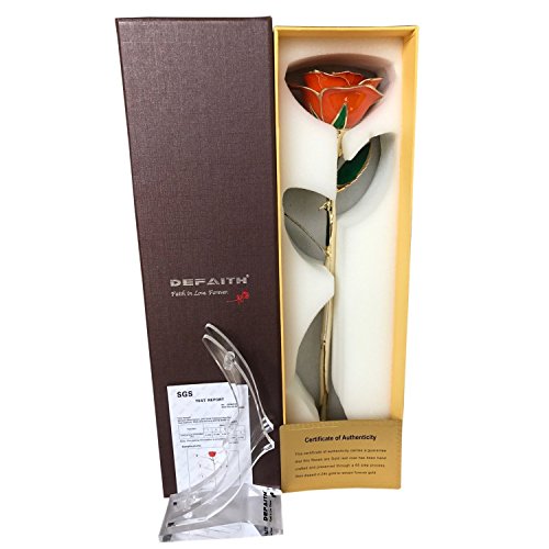 ゴールドローズ、DeFaith 24 KゴールドトリムLong Stem Real Rose with 24 Kゴールドトリムwith moon-shapeローズスタンド。生涯最後します。Best記念ギフト。 GDRose-STAND