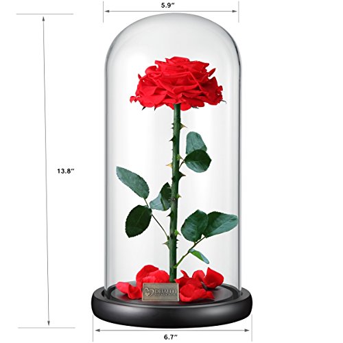 DeFaith 24 KゴールドトリムRealローズ。11. inローズ。ブラック背景 13" H x 6.7" W レッド DF-freshrose-RD
