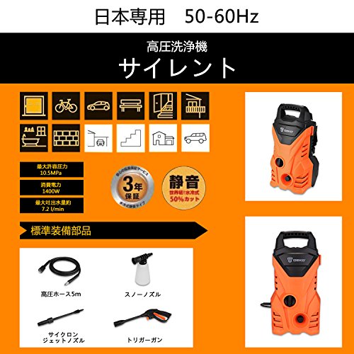 DEKO 高圧洗浄機 サイレント 110V(50-60Hz) 日本地区用 充電式 高圧ホース接続 10.5MPa 車用