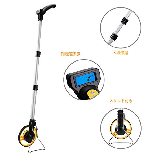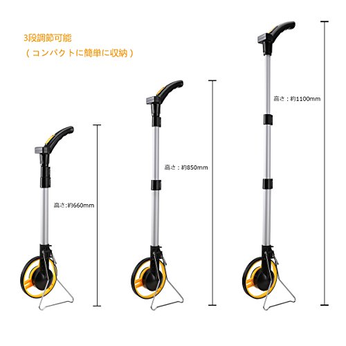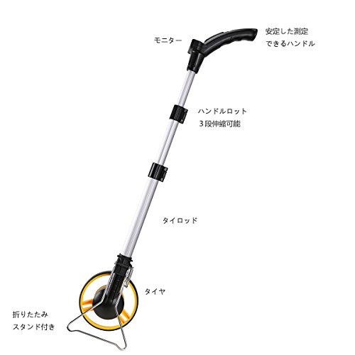 - 使いやすい:スタンド付なので、一輪車の状態で立てます。道路の距離測定、区画整理、距離測定などに適応します。