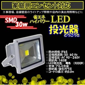 ■LED投光器 【30W 3000k/300W相当】 5Mコード/電球色/暖色 防水仕様
