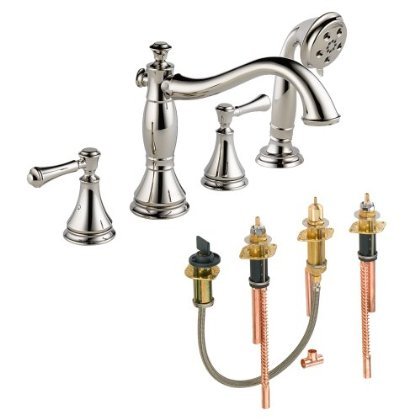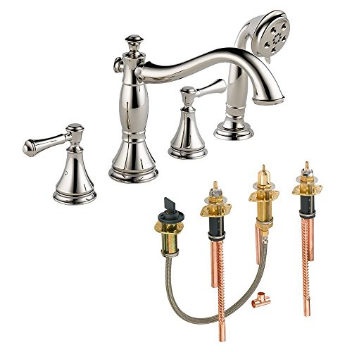 Delta KRTDCA-DH-T4797H697-PN Cassidy Roman Tub Filler Kit Deck-Mount with Metal Lever Handles, Polished Nickel Polished Nickel [並行輸入品]