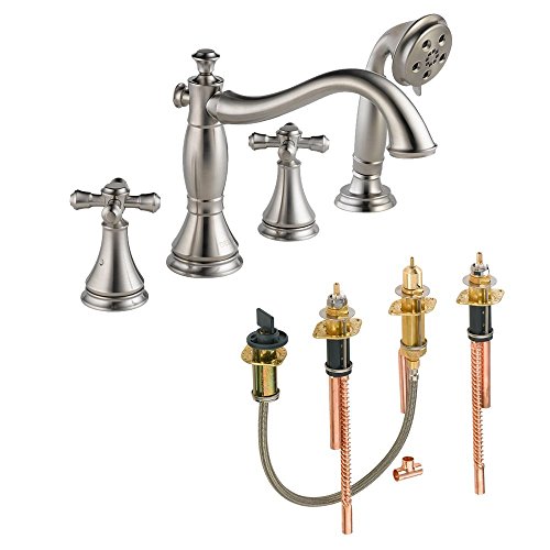 Delta KRTDCA-DH-T4797H695-SS Cassidy Roman Tub Filler Kit Deck-Mount with Metal Cross Handles, Brilliance Stainless Brilliance Stainless [並行輸入品]