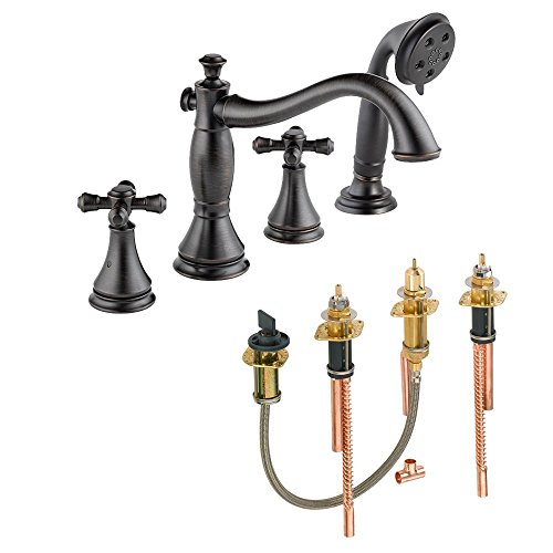 Delta KRTDCA-DH-T4797H695-RB Cassidy Roman Tub Filler Kit Deck-Mount with Metal Cross Handles, Venetian Bronze Venetian Bronze [並行輸入品]