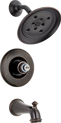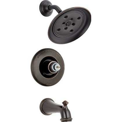 Color:Venetian Bronze With an impressive element of distinction - and a touch of old-world charm - this Victorian Single-Handle 5-Spray Tub and Shower Trim - Less Handle in Venetian Bronze becomes a graceful adornment. Getting ready in the morning is far from routine when you are surrounded by a bath that reflects your personal style. The showerhead features Delta's proprietary H2Okinetic, which uses larger water droplets, coupled with a dense water pattern, resulting in a drenching water coverage. It's designed to soothe, comfort, stimulate or revitalize all while using less water than a standard showerhead.