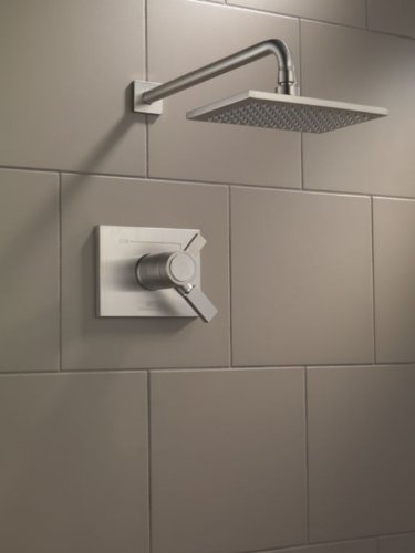 Color:Stainless Product Description Raining down on you for a soothing showering experience, the Delta Vero T17T253 Tempassure 17T Series Shower Trim Set has a sleek modern appeal that can't be missed. This shower trim operates with ease while the durable brass construction ensures years of reliable use. About Delta Faucet Pairing inspirational design with innovations that anticipate people's needs, Delta produces kitchen faucets, bathroom faucets, and shower systems that are as beautiful as they are functional. Delta puts all of their products through a strict regimen of durability testing. Delta Faucet is committed to green manufacturing processes and helping people to be smarter and more environmentally responsible in how they use water. All of these things add up to show how Delta is more than just a faucet. Solid brass construction. Thermostatic operation for precise temperature control. For use with multi-choice universal rough valve body. Touch-clean showerhead provides dual spray pattern. Available in various finishes. Flow rate of 2.5 gpm. Dimensions: 20.75L x 8.75W x 4H in.. From the Manufacturer Its sleek and minimalist are just two reasons the ribbon-inspired Vero is the perfect urban oasis. Getting ready in the morning is far from routine when you are surrounded by a bath that reflects your personal style.