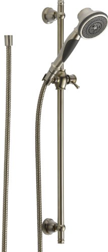 Color:Stainless Product Description The Delta OTHER 57021 Slide Bar Hand Shower with teapot styling coordinates brilliantly with traditional motifs like those of the Victorian, Lockwood, Orleans, and Leland collections. This attractive hand shower features massaging, soft drench, and full-body sprays at 2.5 GPM and comes with a 69-in. Ultraflex hose and mounts to a 24-in. long wall bar with adjustable slide for short and tall bathers. Product Specifications Valve Type: Dual check Flow Rate (GPM): 2.5 About Your Other Warehouse LLC Your ''Other'' Warehouse (YOW) is the premier master distributor serving kitchen and bath dealers and showrooms with more than 450,000 decorative faucets, fixtures, and accessories topped with best-in-class customer service. YOW's plan is simple: The company is absolutely committed to a standard it calls ''exactly right'' - exactly what you want, exactly when you need it, and exactly how you want to be treated. 2-hole wall-mount installation. Long-lasting brass construction. Touch-clean spray nozzles. 3 spray settings. Includes 24-in. slide bar and 69-in. hose. Available in a variety of color options. From the Manufacturer Add convenience and elegance with a Delta handshower. You'll find it's the perfect complement to any shower.