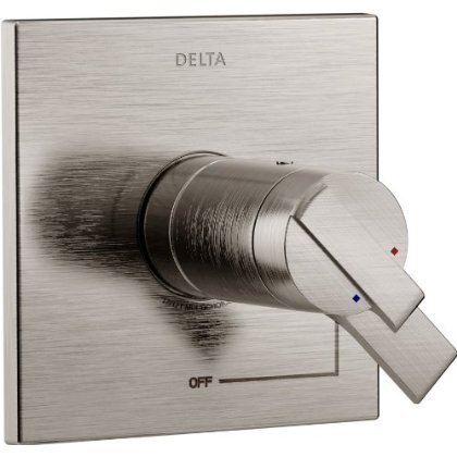Color:Stainless Product Description The modern, angular Are 1-Spray 2.0 GPM Thermostatic Valve Faucet Trim in Stainless brings a contemporary edge to any home. It's a full bath suite with matching accessories, making it easy to perfectly coordinate your space. Delta's dual-function thermostatic valve cartridge keeps water temperature consistent (within 3.6 Degree) by actually measuring and monitoring the temperature of the water and automatically adjusting the water mix to maintain a more precise water temperature. From the Manufacturer The modern, angular Ara 1-Spray 2.0 GPM Thermostatic Valve Faucet Trim in Stainless brings a contemporary edge to any home. It's a full bath suite with matching accessories, making it easy to perfectly coordinate your space. Delta's dual-function thermostatic valve cartridge keeps water temperature consistent (within 3.6 Degree) by actually measuring and monitoring the temperature of the water and automatically adjusting the water mix to maintain a more precise water temperature.