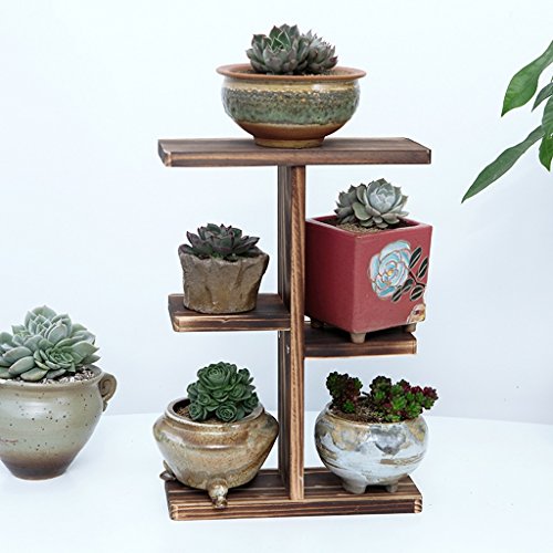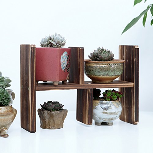 デスクトップミニ花スタンドマルチフロアバルコニー装飾フレームソリッドウッドリビングルームフラワーポットラック ( 色 : Carbon )