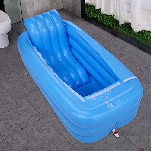 AMOS 折りたたみ式インフレータブルバスタブ大人のバスバレル厚い暖かいダブルラージタブのプラスチックバスバケツは嘘をつくことができる ( 色 : 青 )