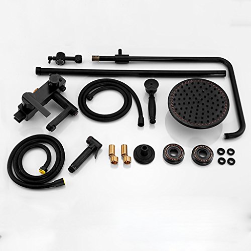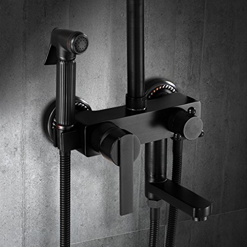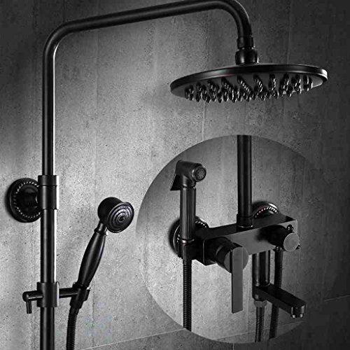 ヨーロッパスタイルのブラックアンティークシャワーシャワーは、女性の洗濯銃と銅加圧レトロ温かく、冷たいバスルームを設定します。