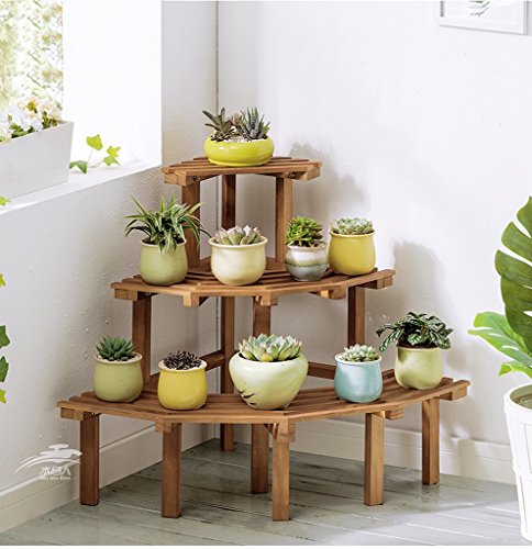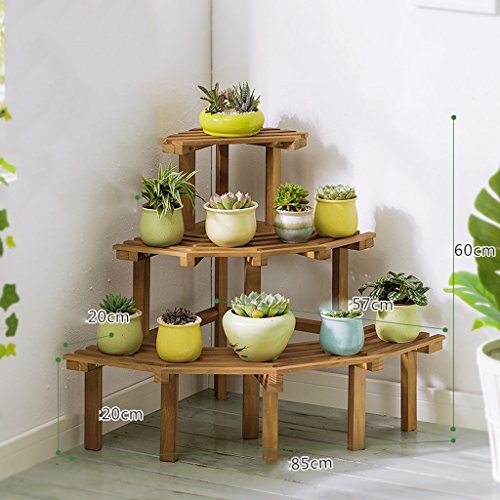 ソリッドウッドコーナーフラワースタンドマルチフロアフロアフロアバルコニー木製フラワーポットシェルフ ( 色 : Retro triangle )