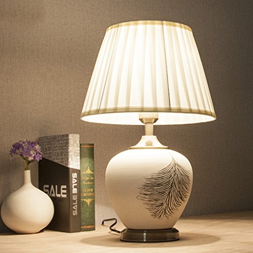 AMOS セラミックランプ手塗りの羽のホテルのリビングルームベッドルームのベッドサイドランプ ( 色 : Dimmer , サイズ さいず : S 30*47cm )