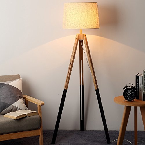 AMOS 現代のシンプルなフロアランプリビングルームベッドルームの研究ベッドサイドの固体木のトラス布ランプ ( 色 : ブラック )