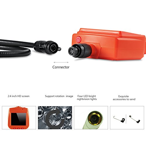 デプステッチ DEPSTECH 工業用内視鏡 ファイバースコープ ウェブカメラ 30万画素 9.0MMレンズ 2.4インチ液晶モニター付き 1Mホース LEDライト4灯搭載 オレンジ