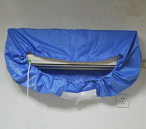 DEWEL エアコンカバー エアコン 洗浄シート カバー 室内 クリーニング 掃除 ブルー 排水 3mホース 付き手袋 セット カビ 埃 汚れ 壁掛け (L)