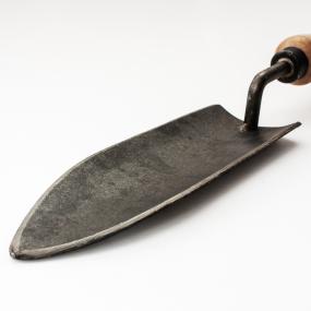 - 狭い場所での作業に最適な、長く細い刃先を持つハンドスコップ。