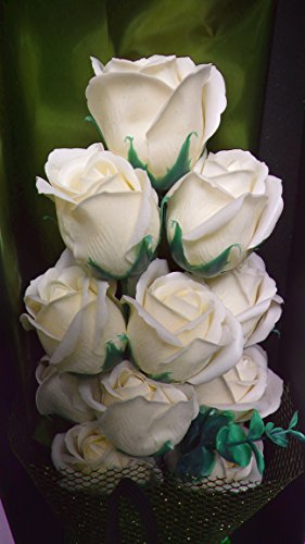(リトルスワロー) LtSw バラ花束 造花 イミテーション リアル バラ 11本 ソープフラワー プロポーズ 結婚式 インテリア お部屋を飾る 清楚な白いバラ (ホワイト)