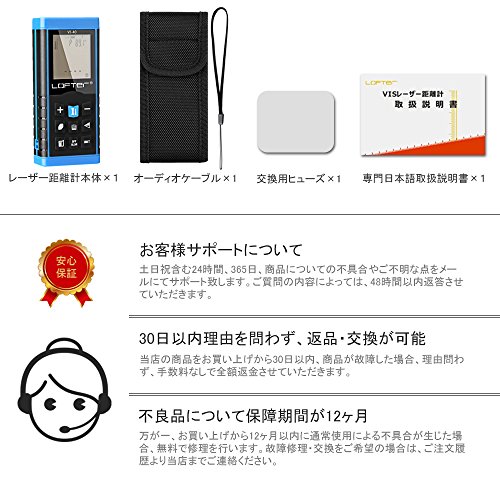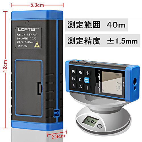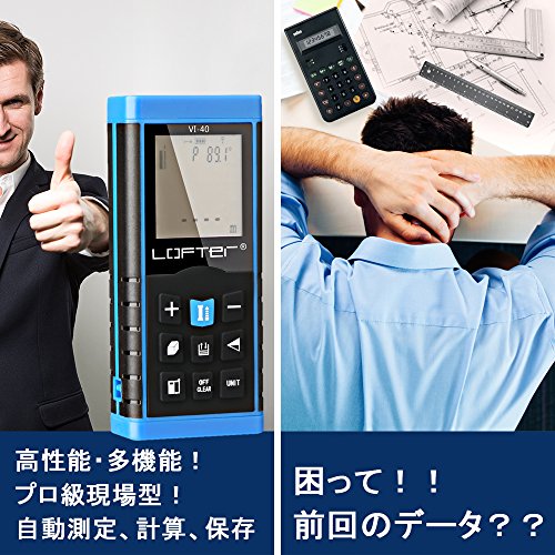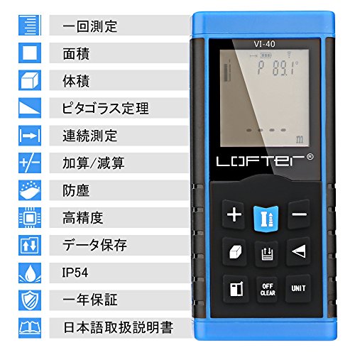 距離測定器 LOFTER 距離計測器 距離/面積/体積/ピタゴラス 連続測定 自動計算 最大測定距離40m 精度±1.5mm 防水防塵 コンパクト 操作簡単 日本語説明書付