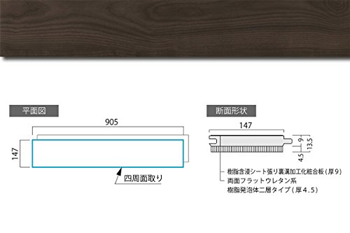 - 1枚の寸法:幅147mm×長さ905mm×厚13.5mm 1箱入数=24枚入(3.19㎡) 1箱で約1坪(畳2枚分)を施工可能