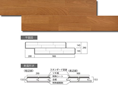 - 1枚の寸法:幅290mm×長さ900mm×厚13.6mm 1箱入数=12枚入(3.13㎡) 1箱で約1坪(畳2枚分)を施工可能