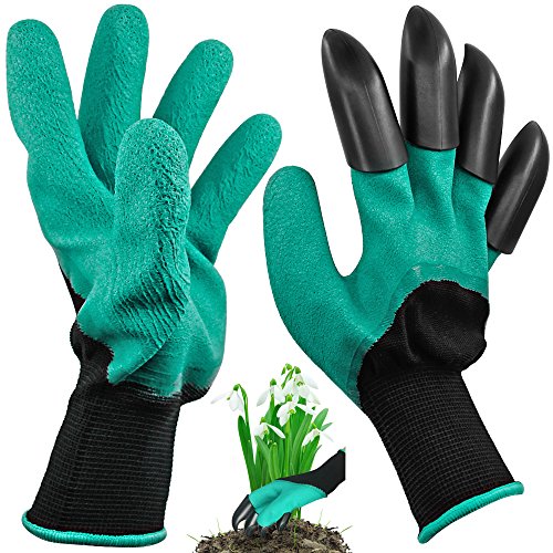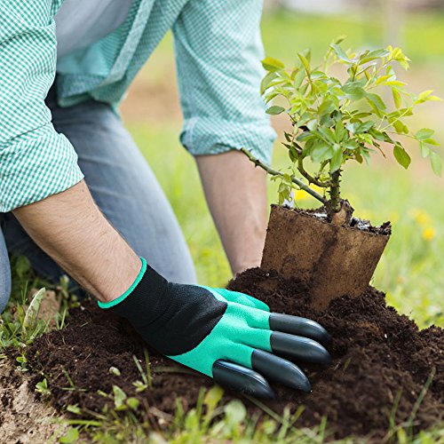ガーデングローブ 園芸用手袋 爪付き 植栽手袋 防水 ガーデングツール 作業用 園芸用具 掘りと植栽 1ペア (グリーン)
