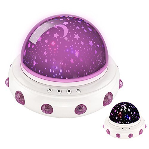 DONGSHEN UFO型LED星投影機 360度回転 ロマンチック装飾 LEDナイトライト 子供用 パープル DD1861