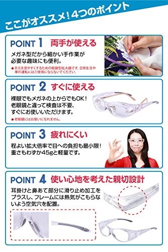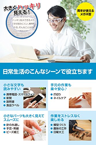 - 👓【両手が使える】メガネ型なので両手が使える!細かい手作業が必要な趣味にもとっても便利なメガネタイプ拡大鏡です。メガネの上からでも、裸眼でも使用可能です。