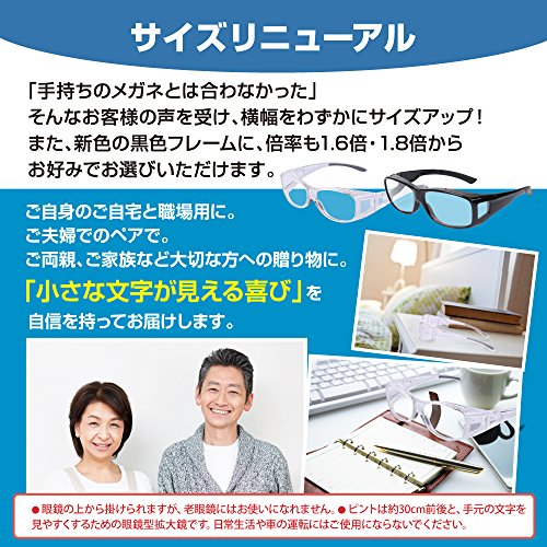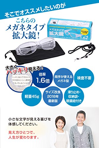 - 👓【拡大倍率1.6倍】お客様の声を受け、サイズを改良した2018年最新版!メガネタイプの拡大鏡で小さな文字も大きく拡大!新聞や小説もストレスなく楽しめます。滑り止め加工と熱気を逃す空気穴がついた改良型。*医療機器(視力補正眼鏡)ではありません。