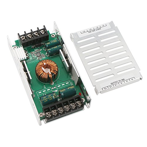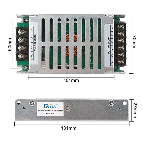 DROK DC バック電圧コンバータDC 12V 9-35V DC 5Vモジュール 電源100W 車 電圧レギュレータ レギュレータ 20A昇降圧なトランスケースボード、アルミニウム製の保護ケース付