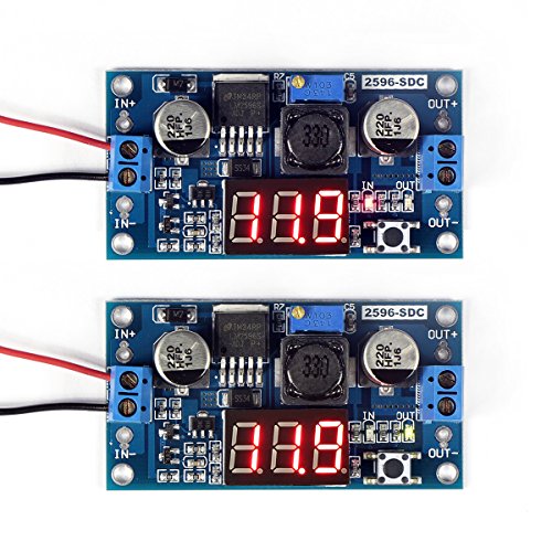 LM2596アナログ制御バックコンバータDC-DC降圧変圧器電圧可調節モジュール36V 24V 12V〜5V 2A赤色LEDディスプレイ付き電圧インバーター電圧安定器電圧計ボード入力/出力電圧