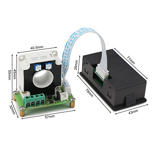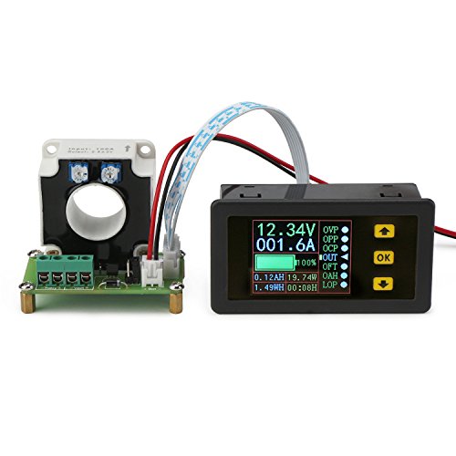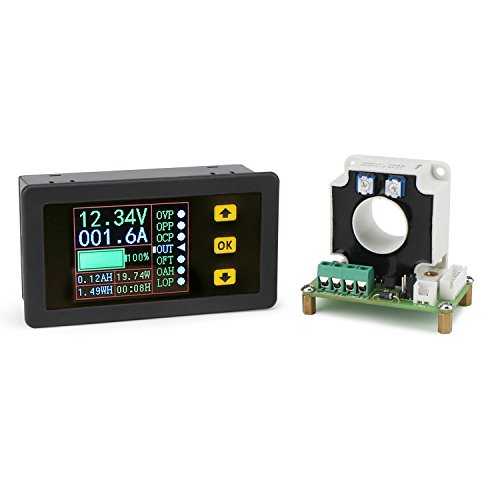 デジタルDCマルチメータ0-90V 0-100A電圧計電流計パワー容量時間計モニタ、充放電バッテリテスタ、電圧/アンプ/ワット/ Ahメータテスタ、20mmホールセンサ付きLCD色彩なクリーン