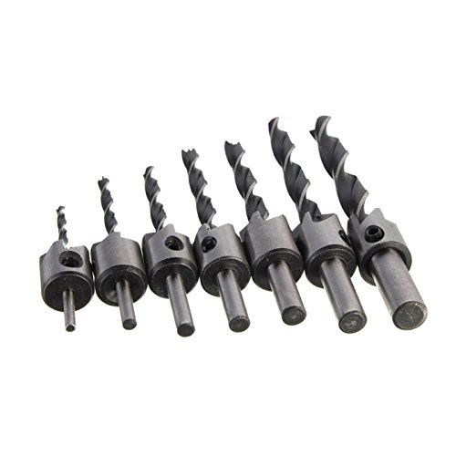 Includes bits for drilling pilot holes for screw sizes 3mm, 4mm, 5mm, 6mm, 7mm, 8mm,10mm. * Chamfer is 5 flutes, in the process of using, can discharge the wood more rapid, sink hole disposable drilled smooth, screw cap perfect embedded in the surface of workpiece.