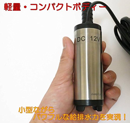 damply 12V 小型 水中ポンプ 12L/min ケーブル 3m スイッチ式 バッテリー クランプ 給排水 電動 ポンプ 1mホース付き