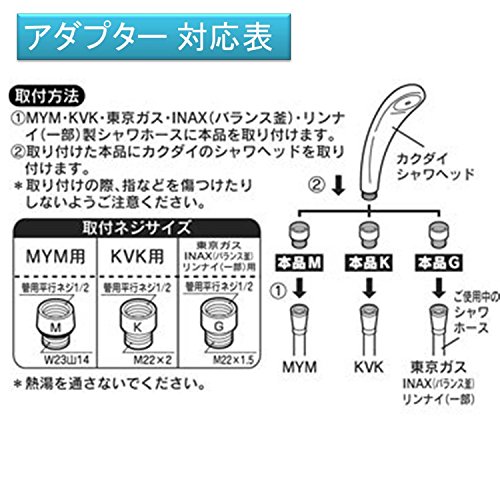 - 取付けはプライヤー等の工具でしっかり締め付けてください。 シャワーヘッド側差し込み口、混合水栓側差し込み口はメーカーにより異なります。 お使いのメーカーやサイズをご確認ください。 適合しない場合は別途アダプターが必要となります。 不適切な接続でのご使用は水漏れや、ホース破損の原因となります。