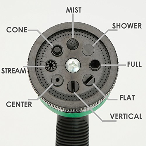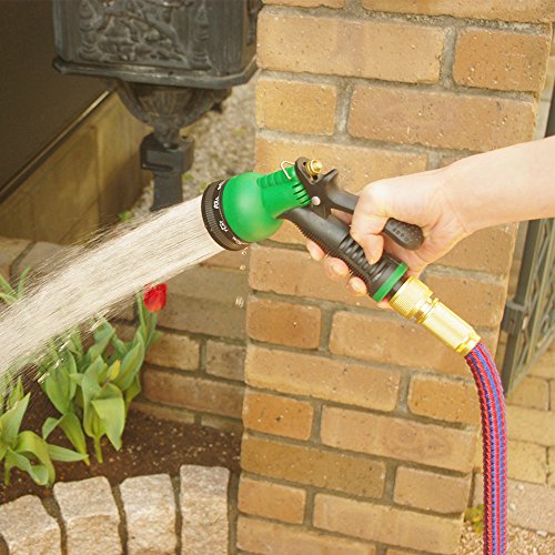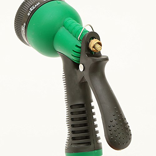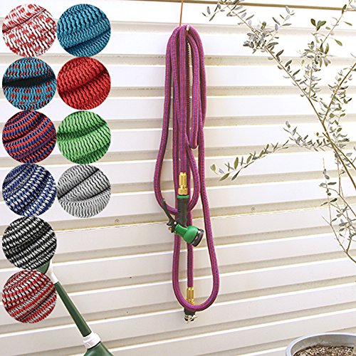 水圧によりホースの長さが伸びる伸縮タイプで、水を出している時には約2倍の長さになり、ホース内の水が排出されると元の長さに戻るので収納時はとってもコンパクト。スプレーノズルは8タイプの噴射が可能です。カラフルなパターンとカラー展開で、お庭の水まきがもっと楽しくなりそうです♪