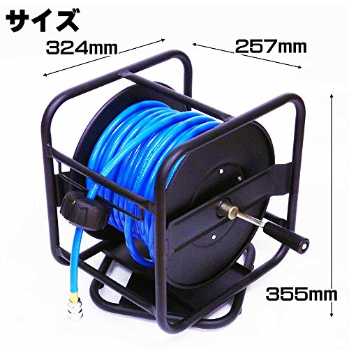 エアーホースリールを超破格値でご奉仕!!! 柔らかいので折れにくい便利なエアーホースです。 充分な長さの30m。回転台付きなので、取り回しも簡単。 ワンタッチソケット&プラグ付き。簡単な接続、分離が行えます。 PVCホースを採用しておりますので、耐水性も抜群です。 取り回しも良く使い勝手も良いので、プロの方にもおすすめしております。 1/4ワンタッチカプラ付 限定!大特価!新品! ☆PL保険加入済み商品ですので安心! ※ホース・本体の色は変更になる場合が御座います。 超お買い得!! 一度お試し下さい。