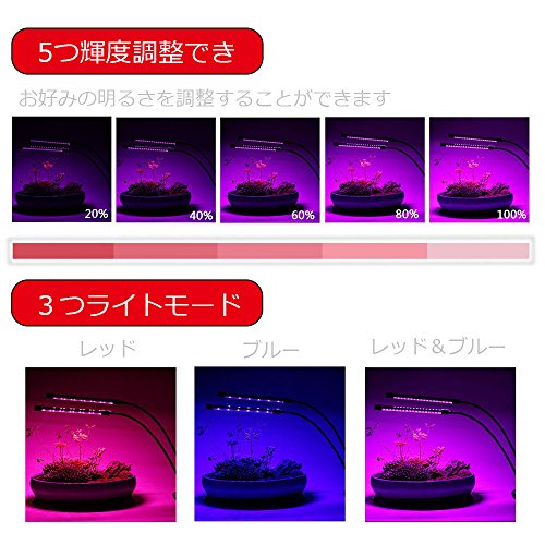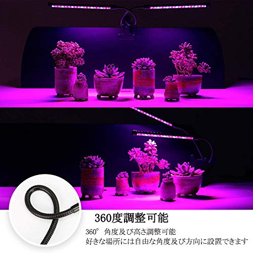 植物育成LEDライト 植物ライト 18W タイマー付き LEDランプ 輝度調整でき 自動的にオン/オフ クリップ式植物ライト 360度調節可能 USBダブルチュープ 水耕栽培ランプ 室内栽培ランプ ガーデン温室
