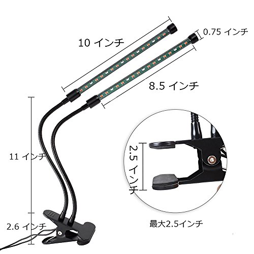 - 【調節可能なデザイン・クリップ式】360°角度及び高さ調整可能なグースネックによって、より広い領域を照らし、どんな方向にも照らし、より多くの植物にエネルギーを与えます。クリップ式で、机等を挟んで容易し、操作が簡単で使用便利です。(アダプターが付いていませんので、注意してください。安全使用するため、輸出電圧が5V以下のアダプターを使用してくださいね。)